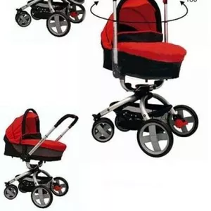 Перекидная ручка регулируется по высоте Короб и прогулочный блок поворачивается на 360 градусов Регулируемая по высоте подножка Короб для детей от рождения Прогулочный блок Ручка для переноски короба 5-ти точечная система ремней безопасности Поворотные передние колеса с возможностью фиксации Солнцезащитный козырек Багажная корзина Вес коляски: 12 кг.