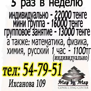 Обучение английскому языку.Индивидуально.В любое удобное для Вас время.По учебникам TOTAL ENGLISH.Подготовка к IELTS, iBT TOEFL.Наш адрес: ул.Жибек-Жолы, 76, офис 406.Напротив Силквея на Арбате. Телефон:8(727) 273-05-54, +7-701-232-66-80.